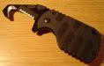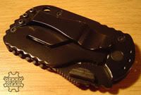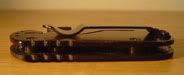 Das Rescom ist enorm klein und kompakt, einer der ersten Gründe, warum es meine Aufmerksamkeit erregte. Aufgeklappt ist es 112mm lang, zusammengefaltet gerade einmal 70mm lang und 40mm breit. Ohne den Halteclip ist es gerade mal 8mm flach, mit diesen Maßen bekommt man das Böker Plus Rescom auch noch in der allerkleinsten Hosentasche unter - dennoch liegt es hervorragend in der Hand, auch hier wieder selbst mit Handschuhen. Der Clip (der von drei Torx-Schrauben gehalten wird und der sich mit einem entsprechend kleinen Schraubendreher umsetzen lässt) hält stramm genug, so dass ich das Messer auch an der Aussenseite des Gürtels sicher und verlustfrei lange Zeit und während Arbeit und Klettern getragen habe.Die Klinge lässt sich mit einer Hand öffnen, selbst mit Handschuhen stellte das kein Problem dar, nach dem Öffnen arretiert sie stabil. Gefertigt ist sie aus AUS-8 Stahl (enthält im Gegensatz zum gängigen 440 Nickel und Vanadium), Klinge wie auch der Metallteil der Griffschale sind zum Korrosionsschutz schwarz beschichtet. Lediglich eine Seite der Griffschale ist aus glasfaserverstärktem Kunststoff gefertigt, was das Gewicht des Böker Plus Rescom weiter auf geringe 62 Gramm reduziert. Die Griffschale bietet ein Loch, um beispielsweise einen Lanzard daran zu befestigen. Einzig ein Glasbrecher fehlt, um dieses Messer perfekt zu machen, was schade, aber bei der geringen Grösse verzeihlich ist.