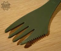 In den letzten Reviews hatten wir Trinkbehälter und wir hatten Messer, was fehlt da noch für das vollendete Abendessen in der Wildnis? Natürlich Löffel und Gabel! Und beides in einem schauen wir uns heute an mit dem "Spork" (Mischung aus engl. "Spoon" und "Fork") der Firma Light My Fire.Ich entdeckte den Spork durch Zufall in einem U.S. Army Shop in Amsterdam. Bei einem Preis von um die 2 Euro konnte ich auf keinen Fall nein sagen. Der Spork ist mit gerade mal um die 10 Gramm ein absolutes Leichtgewicht. Er ist aus Polycarbonat, dementsprechend nicht nur leicht sondern auch sehr temperaturbeständig, wie auch die zuvor schon betrachteten Trinkflaschen aus dem selben Material kann man den Spork mit kochenden Nahrungsmitteln und Flüssigkeiten verwenden - zusätzlich ist er für Teflongeschirr und die Spülmaschine geeignet.